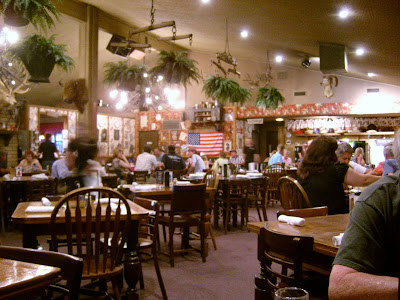 The dining room is decorated in an old west motif, and has trophy animal heads hanging on the walls. Wooden tables have no tablecloths, which is fine because I would have just made a mess of it. The place was pretty crowded for a Sunday night.