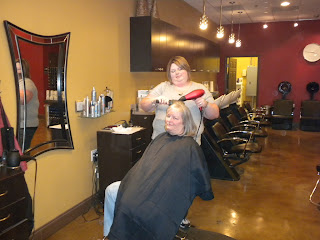Then it was my turn. Becky cut off about two inches, trimmed my bangs, and then styled my hair. I always feel like a pampered princess when I go there.