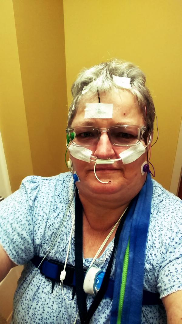 The first test I had done was a sleep study at the Sleep Center at the hospital. They attached about a million wires to me, on my head, chest, back and legs. Then, I was supposed to sleep for the night, and all those wires would record whether or not I experienced REM stage; if I snored; or if I tossed and turned in bed. The room where the did the study didn’t look like a hospital room at all. It was more like a hotel room with nice furniture, cable TV and a Sleep Number bed, so that you could get as comfortable as possible. Even with all that, I felt like I didn’t sleep a wink while I was there. When it was over, I went home and slept most of the day in my recliner.