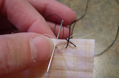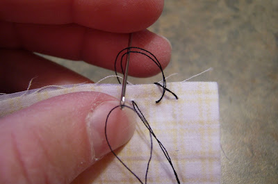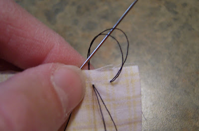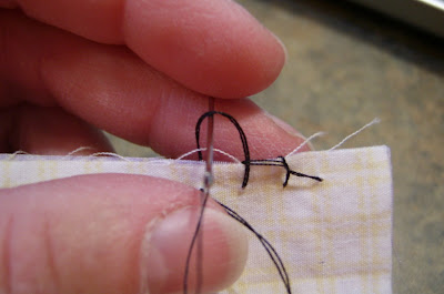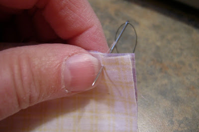 You may have a project that has several layers of fabric, such as a quilt. I used bias tape that I made myself on this one, and sewed it on with a needle and thread: