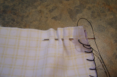 Or, you may have only one layer, as in an apron, a skirt, or a blouse. I used purchased bias tape on this one, and sewed it on using the sewing machine: