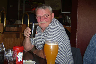 Barley Brothers Brewery was the place. They make a coffee beer that FabGrandpa loves! He says it is just the right combination of caffeine and alcohol. See how dark that beer is? We ordered lunch and drinks, and had a wonderful time visiting with our friends.