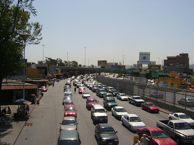 We parked at a lot on the U.S. side of the border, and walked across the bridge to Tijuana. It was a pretty long walk compared to other places where I have crossed into Mexico. There were lots of people walking over that day. In the picture below are cars at the border stop going into Mexico: