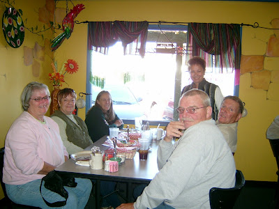 yes, that is me on the left in the pink sweatshirt. My hair is getting longer. I want it long enough to wear it in a ponytail. Next to me is a new friend, Berta, Gaelyn, the Geogypsy. On the other side of the table is FabGrandpa, Jim and Bev of YmeIsay fame. Food was delish as usual and company was most fun!