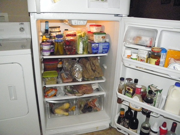 We are almost done with the tour of my gluten free kitchen, but first, you have to see the refrigerator. It is huge, too, compared to the RV one. I keep it full of fresh fruits and veggies, and try to keep us fed with healthy stuff most of the time. With gluten intolerance and type II diabetes, I have to try to stick to that.