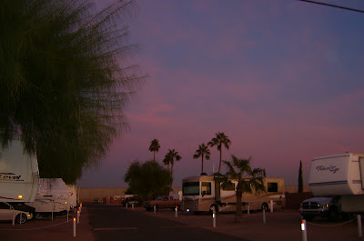 This was looking the other way, to the east. The sky was a vivid pink giving way to purple at the edges of the sky: