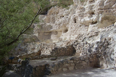 On Sunday we drove the 75 miles up to Montezuma’s Castle. It was named after Montezuma, but he never lived there. It was not even the Aztec’s who built it. The Sinagua Indians were the ones who built this primitive condo back in the early 1400’s. They built on rooms and floors for nearly 300 years, to accomodate their growing tribe. It is an amazing thing to see, knowing that they had to climb ladders up the cliffs, hauling water, stone, and dirt to build their house.
