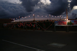 The lot will be open seven days a week from 9:00 a.m until 9:00 p.m. We’ll be working most days, but Charlie and Lynda are living in their motorhome on the lot, so they will not be able to leave until the lot closes on Christmas Eve. We really had fun working today, but don’t want the responsibility of managing the whole thing. I was secretly worried that I wouldn’t be able to do the work, but even though the trees were huge, it wasn’t more than I could do. Having that tree mover thingy was a big help. So, we go back and do it all again tomorrow.