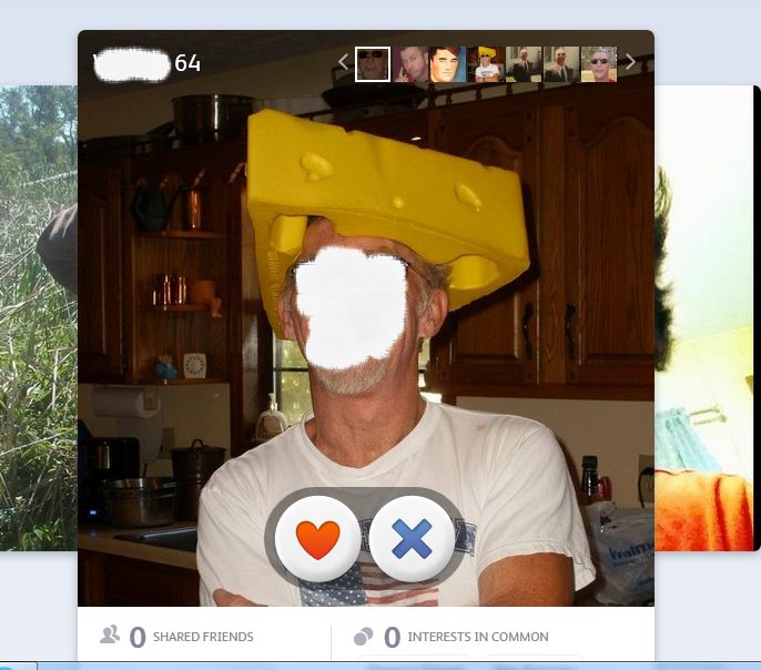 This guy looks like he might be fun to hang around with. He definitely displays a sense of humor in his photo. I can also tell that he is patriotic by the T-shirt he has on, and that he has nice smile (trust me on that. I blurred out his face for his privacy.) He is also in an appropriate age group for me, if I was looking for a date or a dance partner. If you click on the heart instead of the X, and that person also checks the heart on YOUR profile pic, then you are sent a link to get in touch with each other. Simple as that! While I don’t think this APP is really for me, all my single friends out there who would like to meet someone in their area and age group, should definitely give it a try. Download the mobile app app here. Check out Hot or Not on Facebook, too.