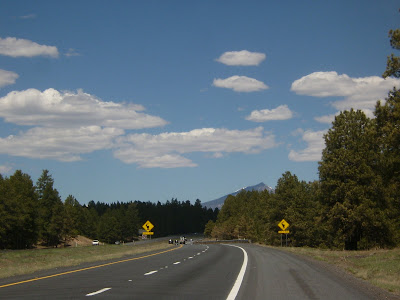 Just wanted to come by here and let you all know we arrived safely at the Grand Canyon on Saturday afternoon. The wind died down a bit in the morning, so we left Flagstaff. Everything was fine until we rounded the bend in Marble Canyon, and were in a head wind. It was blowing about 45 miles per hour, and made it feel like the brakes were on. I have never experienced anything like it! That was the worst of it though, for about 20 miles, then it was fine the rest of the way. The trip up the plateau went smoothly.