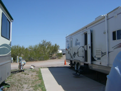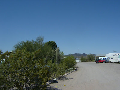 At the top of the mountain is Yarnell. It is like a littel paradise in the middle of Arizona. After seeing it I can understand why Gaelyn wants to live here in the winter months, even if they get snow from time to time. It is gorgeus. This is the yard between Gaelyn’s 5th wheel and Berta’s house: