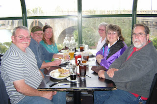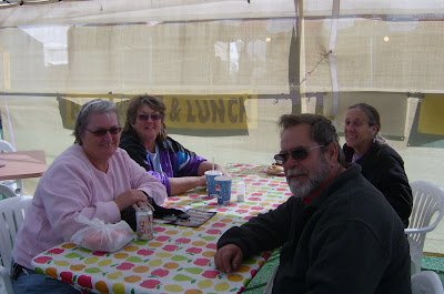 We walked around that show in the desert for 6 hours! We were all tired and dusty, and hungry. Here we are at lunch: Me in the pink sweatshirt, Lynda next to me, Charlie across the table, and Gaelyn beside Charlie. FabGrandpa had a cold and didn’t feel good, so he stayed at home. (better for me, to be able to buy what I wanted, hahahaha.)