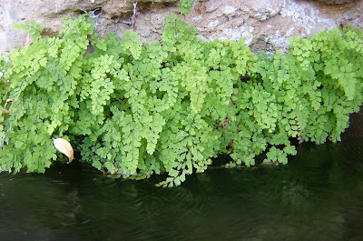 This is maidenhair ferns growing out of the rock by the edge of the water.