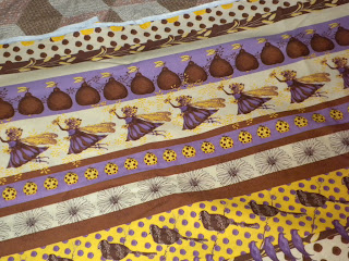 I had bought some yellow and purple fabric for the new baby’s quilt when a month or so ago: