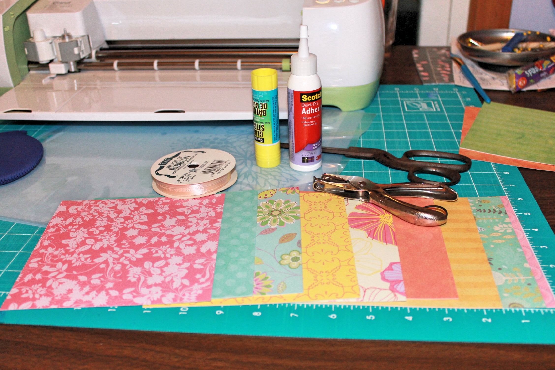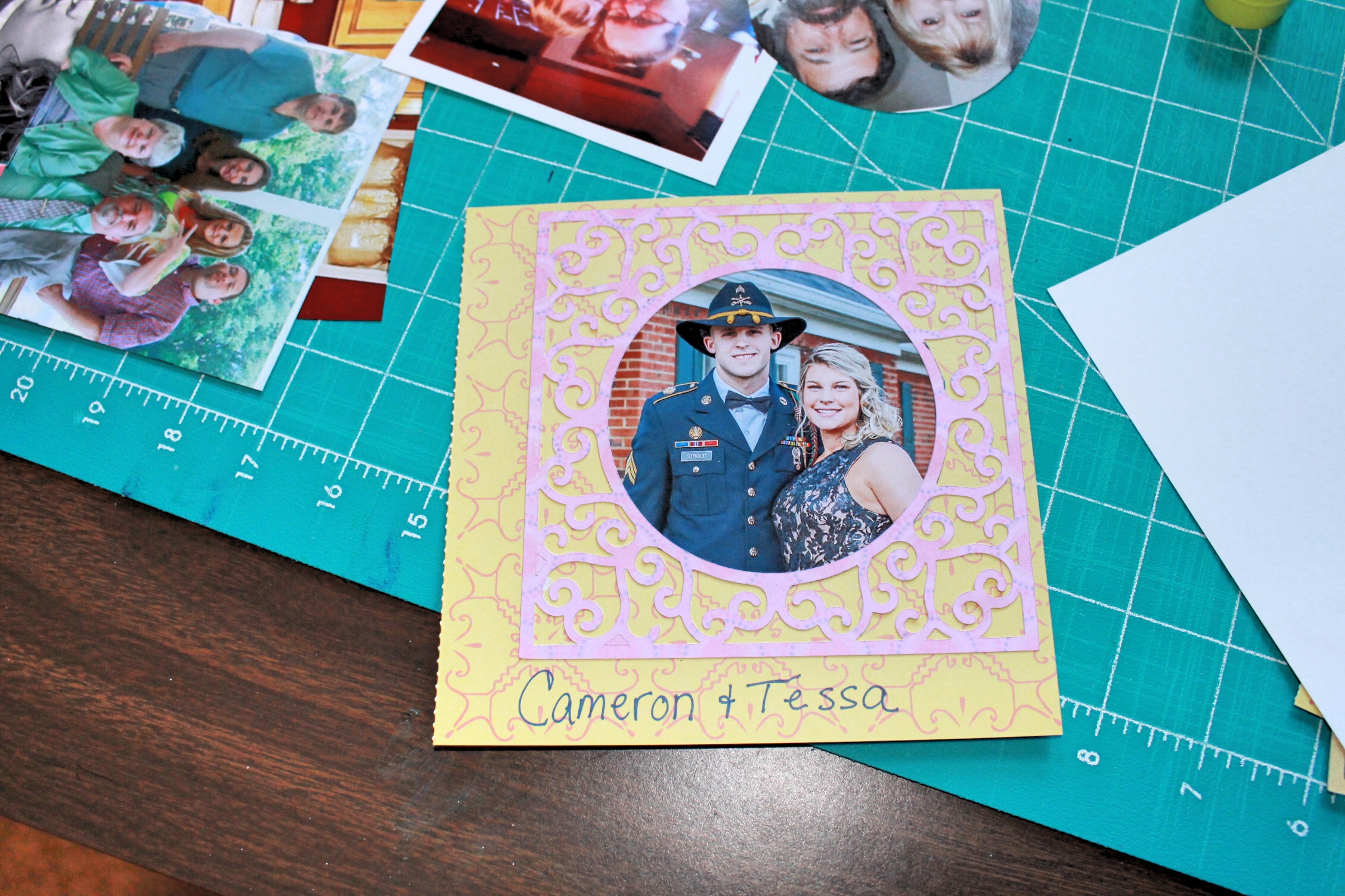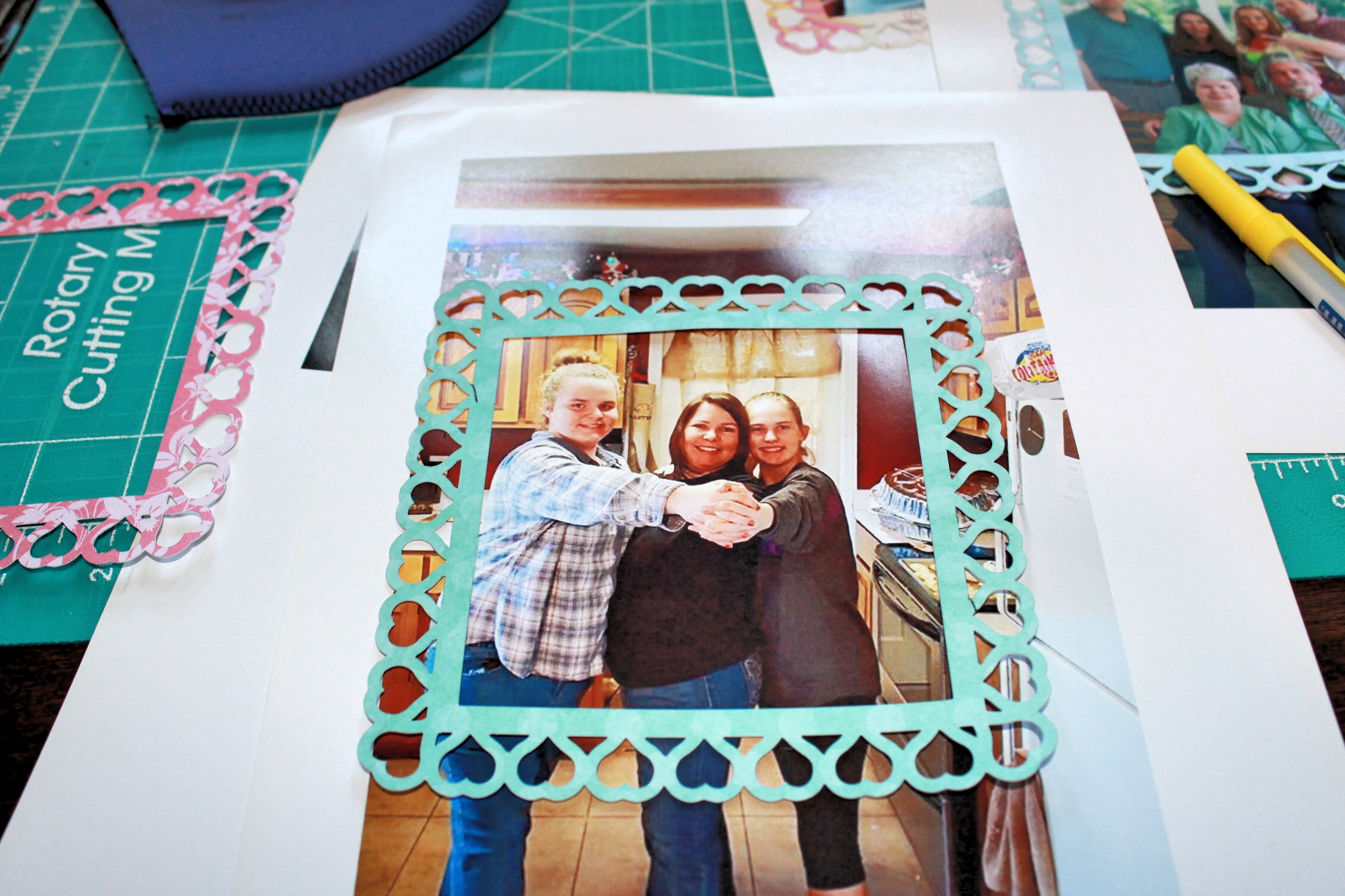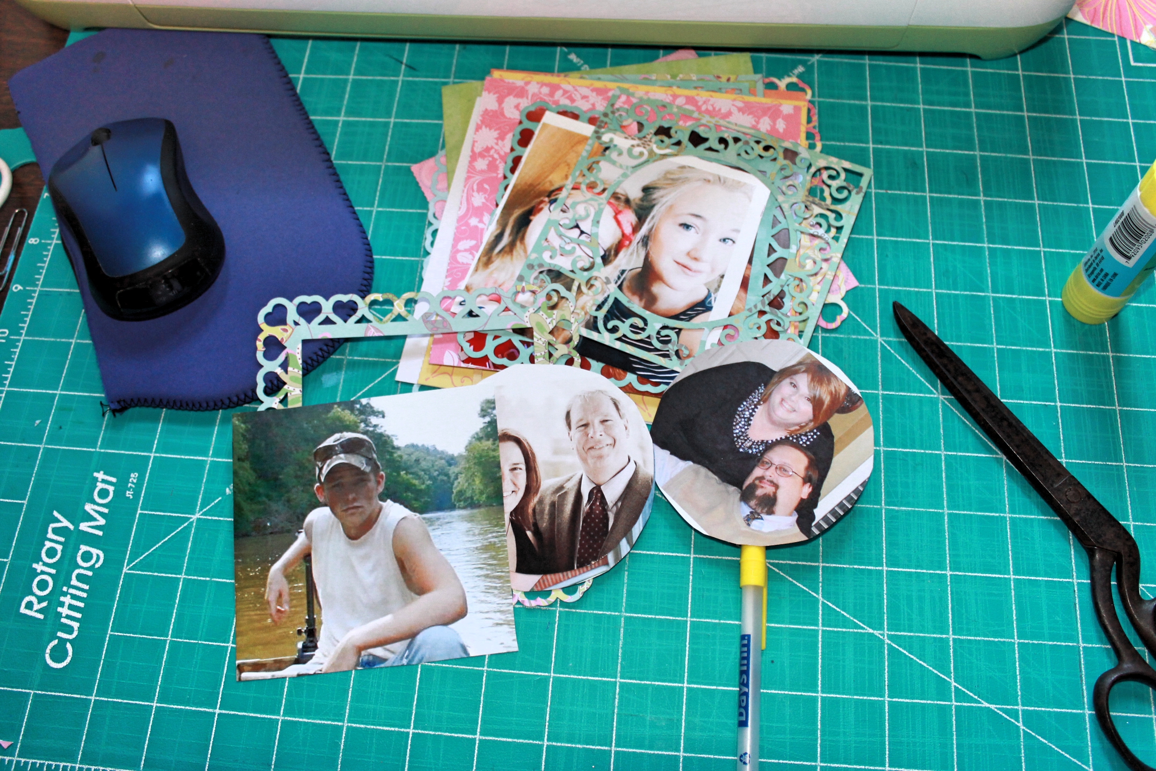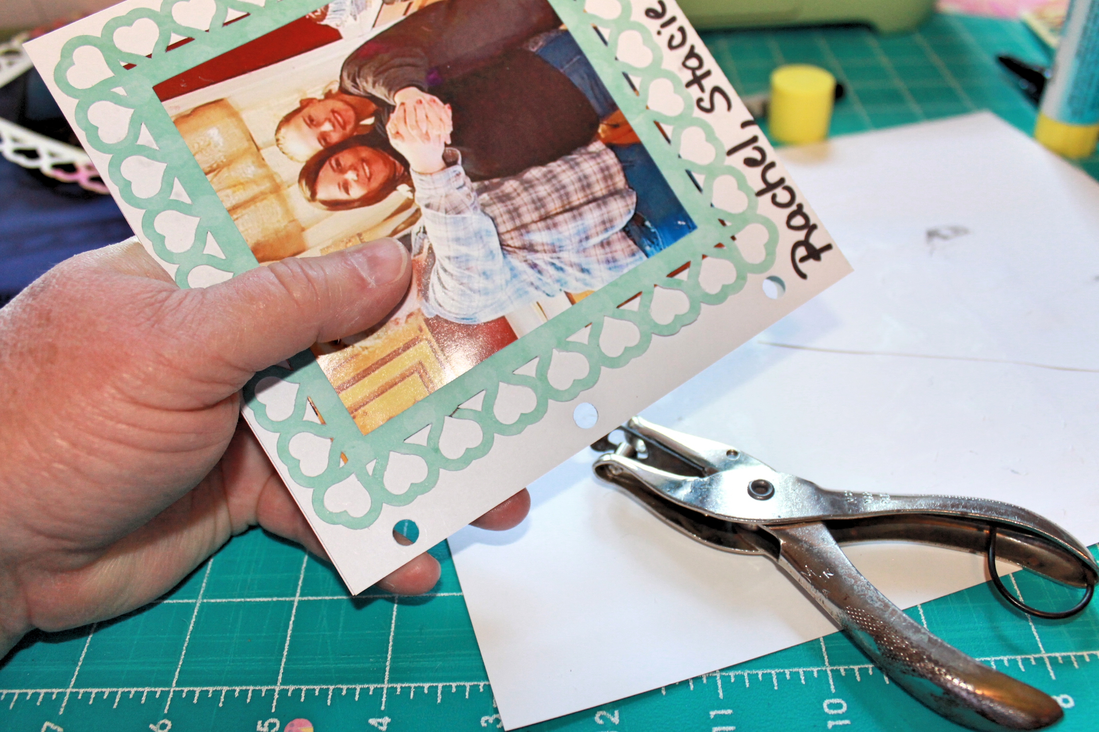 **Next, I chose some pretty paper, and cut out frames for each photo using my cutting machine. I varied the shape of the frames to make the book interesting.
