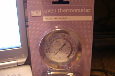 So today I put the new oven thermometer in the oven and turned it on at 400 degrees. About twenty minutes later, the thermometer was showing 350 degrees. So THAT is why the things I have been trying to cook have not been turning out right.