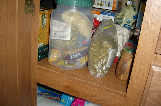 One of my blogger friends, Talina, from Harvest of Daily Life, posted a picture of her refrigerator, and issued a challenge to her readers of showing theirs, too. So, I accept the challenge and do it one better. I am showing you my refrigerator AND my pantry. So, for your viewing pleasure, here are: